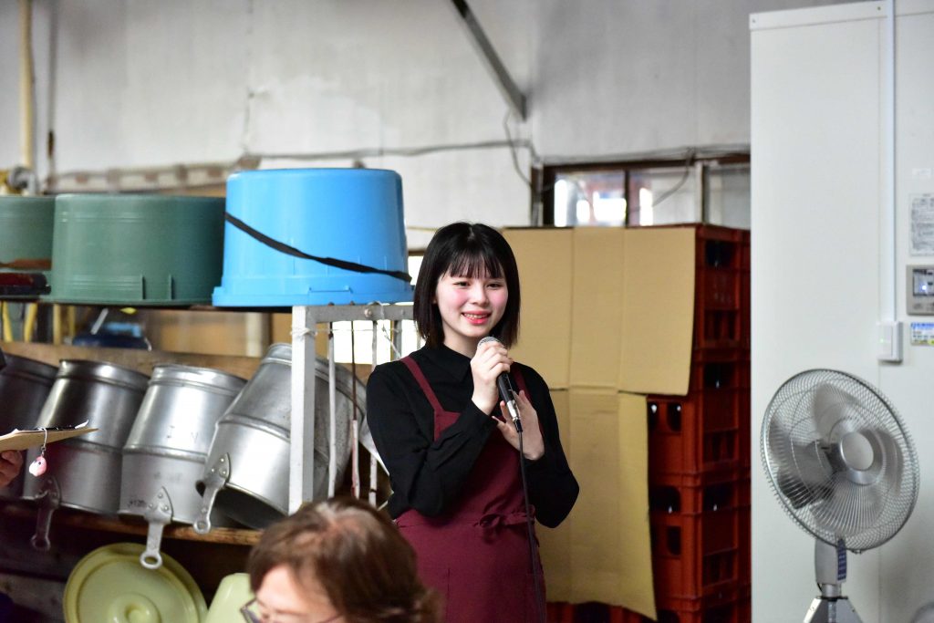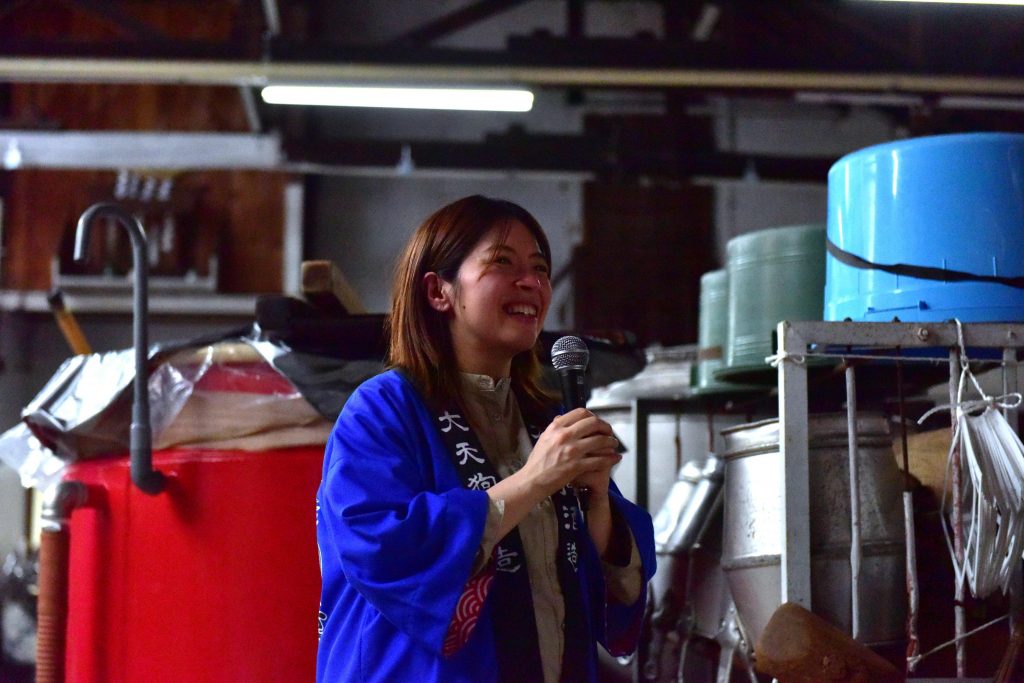酒蔵をご案内するのは、4代目当主のお父様と一緒に老舗酒蔵を守り続けている杜氏の小針 沙織さん。