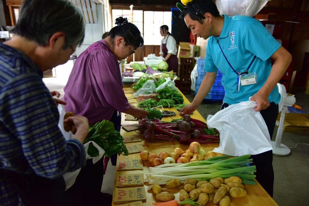 トークライブ後には、矢吹さんによる大玉野菜のマルシェにて、激安のお野菜などのお買い物もお楽しみいただきました。もちろん、みなさんお気に入りの大天狗酒造さんのお酒も購入されていました。