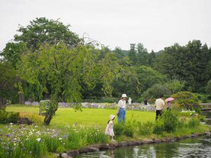 3万坪の広い苑内に、四季折々の花々が咲き誇ります。6月中旬からは池の周辺一面が約30万本もの花菖蒲で埋め尽くされる風景は圧巻です。