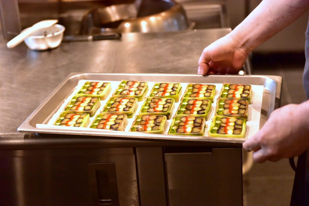 野菜は料理に彩りを与え、季節感を演出できる重要な存在。かつてブライダル業にいたときは一年中、同じようなメニューを求められることに残念な気持ちがあったそう。「使ったことがない食材や様々な旬の食材と新しい組み合わせをを試すことができる今は、料理人としても楽しい時間。こうしたら自信をもって出せるなというところまで食材について研究することは、新鮮な感激があるし、常にお客様を楽しませるために必要な努力」とまさに店名にふさわしいメッセージを國岡シェフからいただきました。