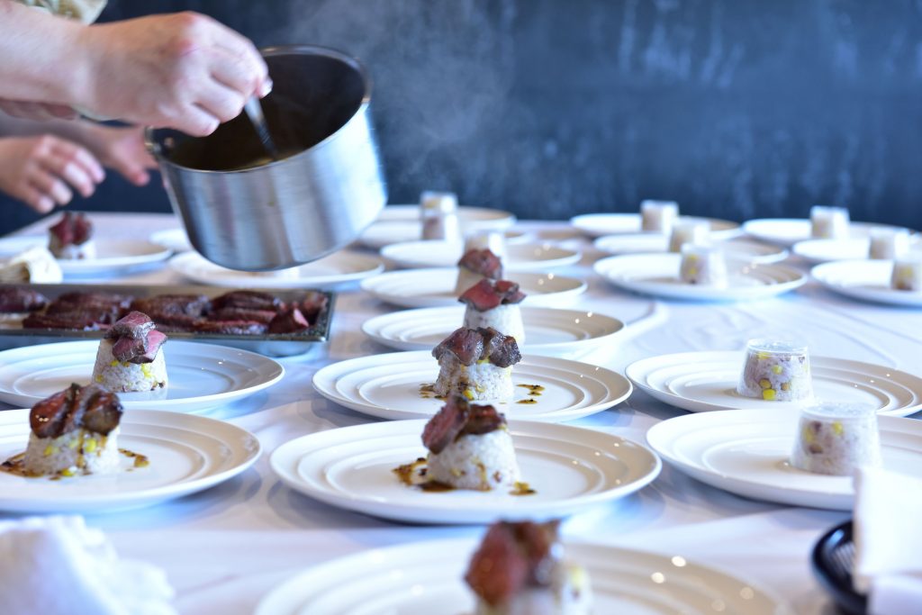 ドルチェドリームのバターライスとロゼに仕上げた福島県産黒毛和牛シンシンのロティ