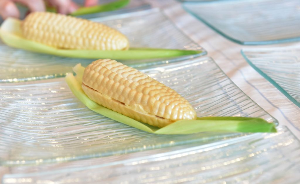 シェフが苦労して探したとうもろこし型の最中がなんともかわいらしい! 中はとうみぎ丸のアイスクリーム
