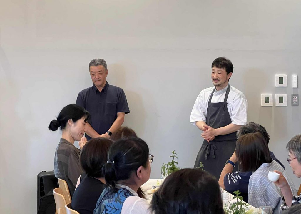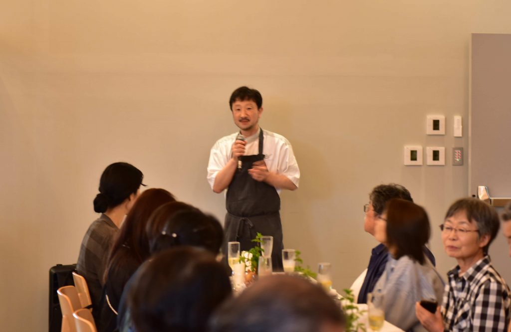 食後には、お二人のトークライブも。シェフにとって、身近に旬の野菜を小ロットで買える鈴木農場は貴重な存在、「野菜がおいしいと言ってもらえるのが一番うれしい」とシェフ。一方で、野菜の美味しさを最大限に引き出してくれるシェフに、感激しきりの鈴木さんでした。
