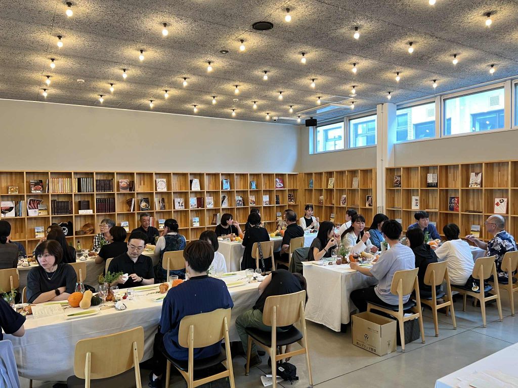 学食らしく、周りをぐるりと本棚に囲まれています。さりげなくFoodCampの本を展示していましたが、気づいていた方はいらしたでしょうか?