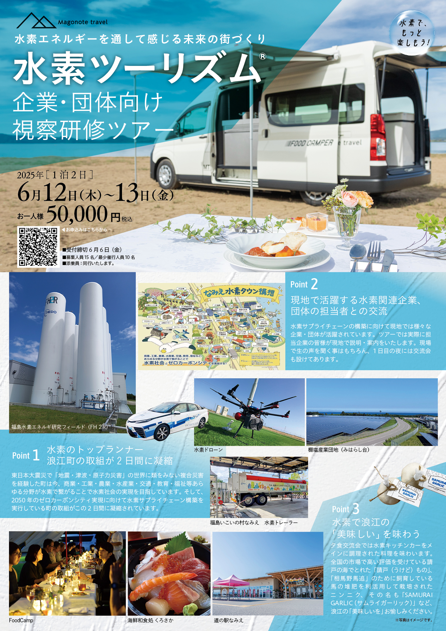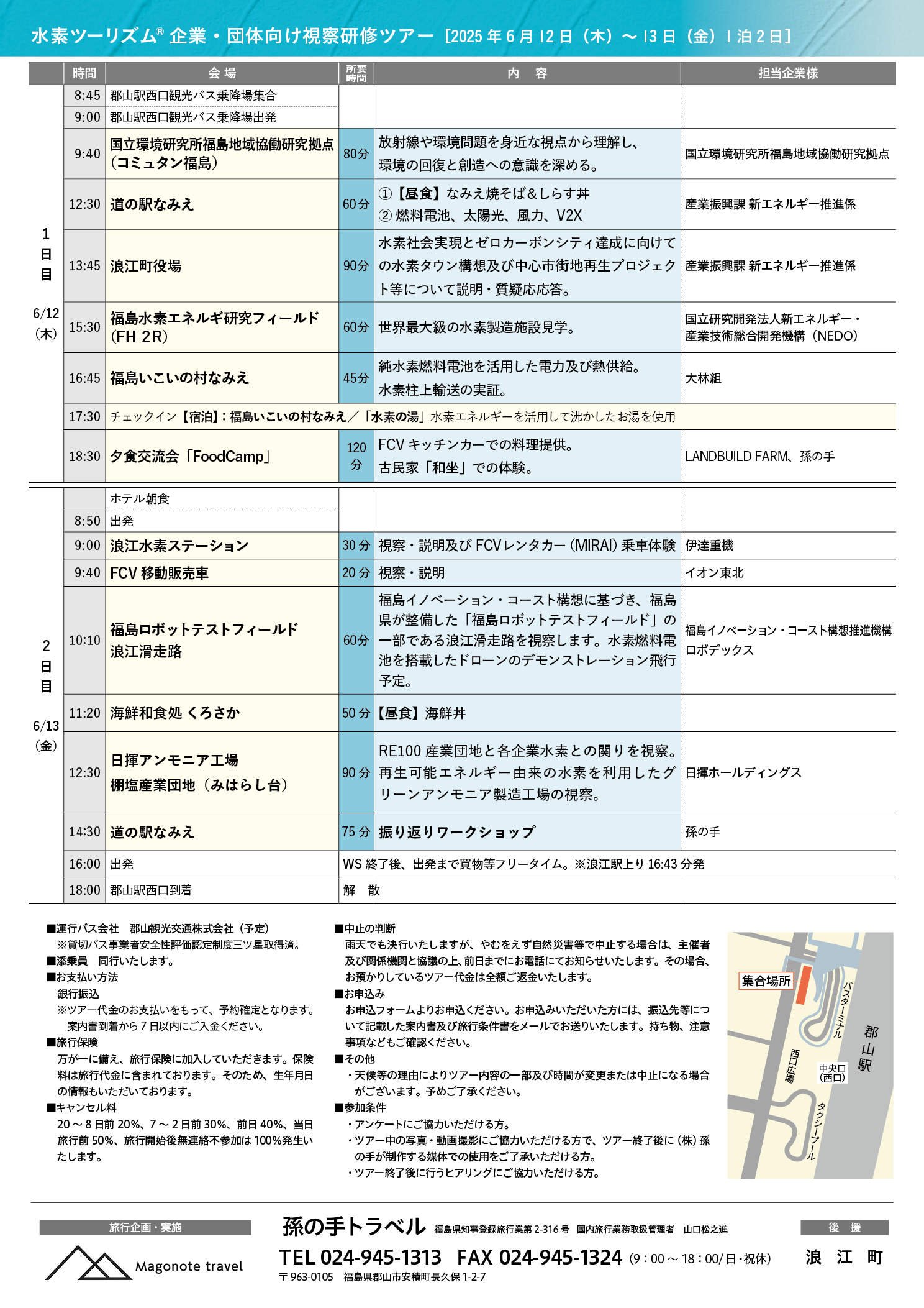 孫の手トラベルオリジナルツアー「水素ツーリズム®」を開催します! 企業・団体向け視察ツアーを開催します。 水素エネルギーを通して未来の街づくりを感じてみませんか? ご興味のある方は、下記のお問い合わせフォームよりお問い合わせください。 お問い合わせはこちら