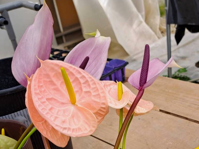 川俣町の名産として知られる、南国の花・アンスリウム。アンスリウムは熱帯アフリカ原産で、その多くは台湾などからの輸入に頼っていますが、川俣町では、「かわまたアンスリウム」と名付け、栽培に注力しています。