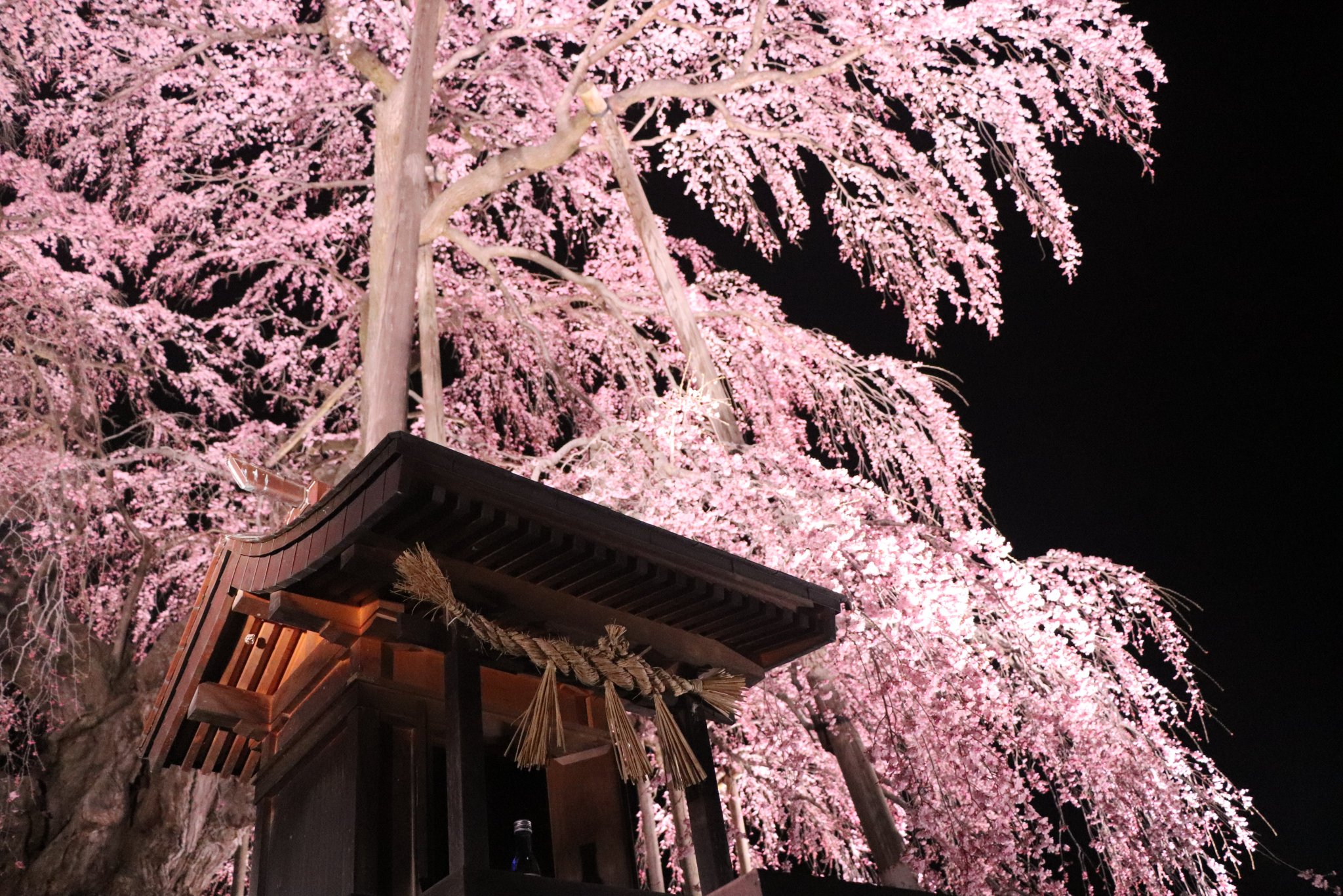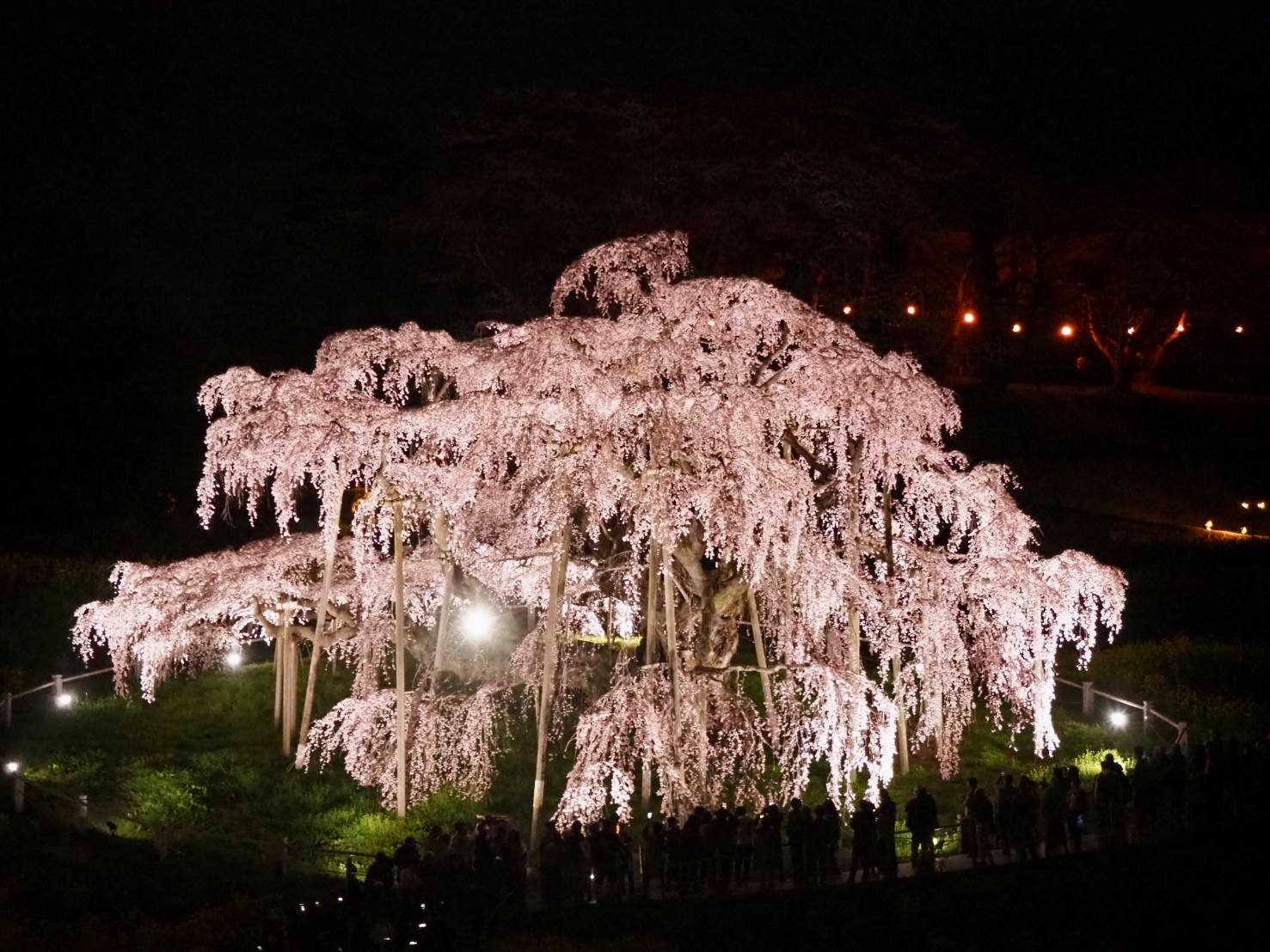 日本三大桜「三春滝桜」の夜桜ライトアップを見学