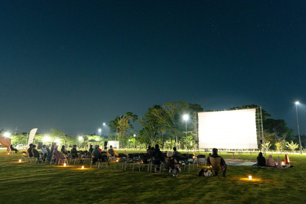 桜の名所「夜の森公園」で秋の夜風に吹かれながらの映画鑑賞。