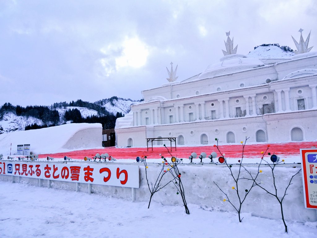 想いを込めて作製した様々な雪像は、温かく幻想的な雰囲気でお客様を迎えます。 大雪像前のステージでは伝統芸能や厄行事など多彩なイベントを開催され来場者を楽しませてくれます。夜にはメインステージにある大雪像がライトアップされ、雪まつりを幻想的な世界へと変えます。また、様々な願いが込められた祈願花火やプロジェクションマッピングが真冬の夜を彩ります。毎年2万人を超える来場者を魅了する只見町の真冬の一大イベントになります。