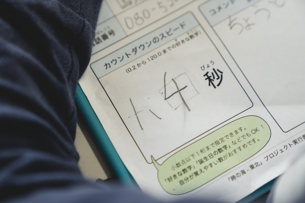 9、8、7、6 …と数字が切り替わるタイミングの時間を、参加者の希望する秒数(0.2秒〜120.0秒まで)に設定し、その秒数に込めた想いを傾聴するワークショップにご参加いただけます。
